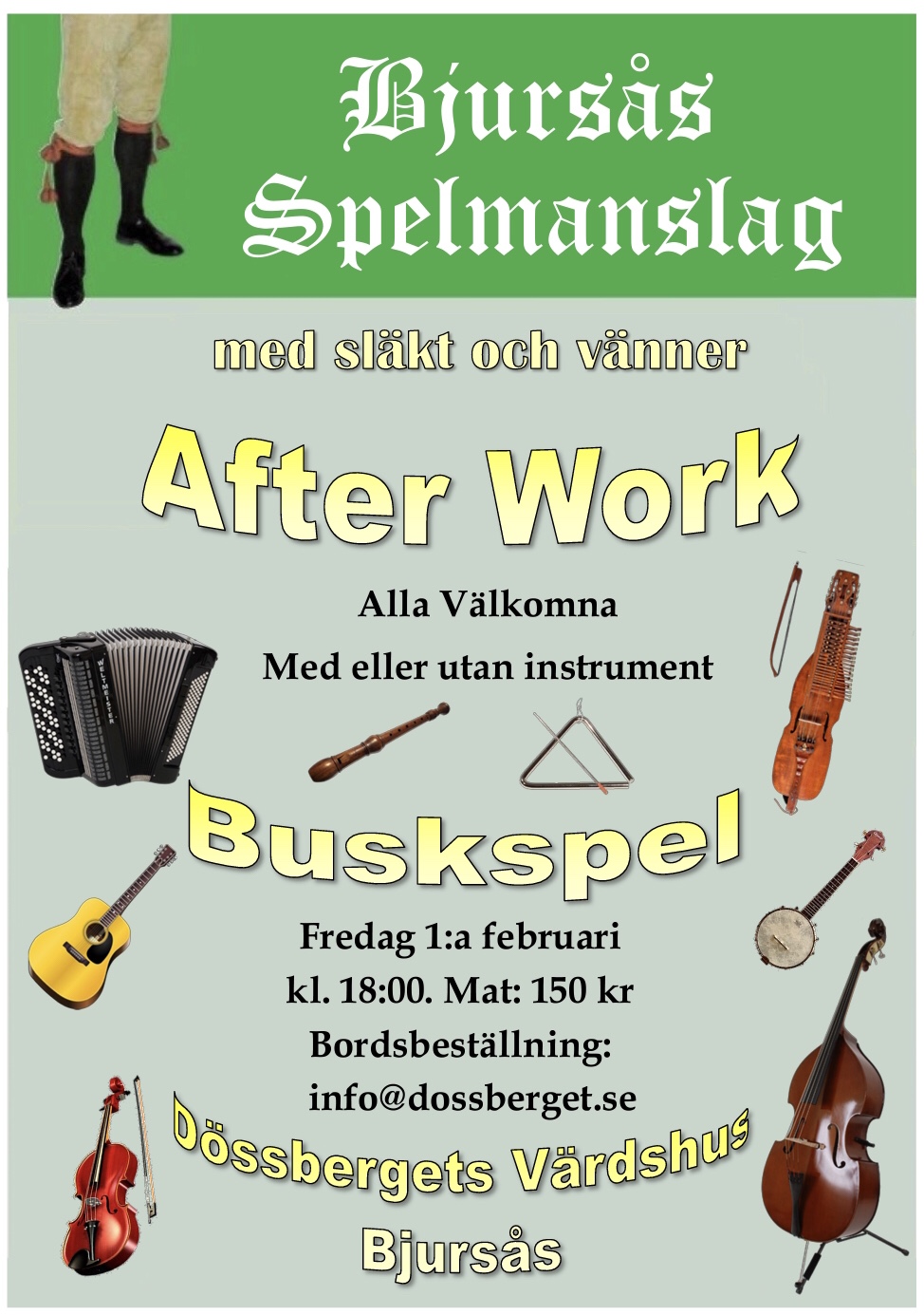 Ta med ditt instrument och spela med Dalarnas många spelmän. Det blir som tidigare en höjdarkväll efter veckans jobb.