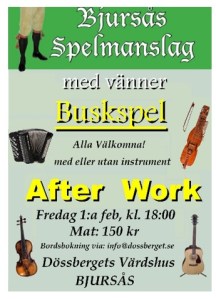 Ta med ditt instrument och spela med Dalarnas många spelmän. Det blir som tidigare en höjdarkväll efter veckans jobb.
